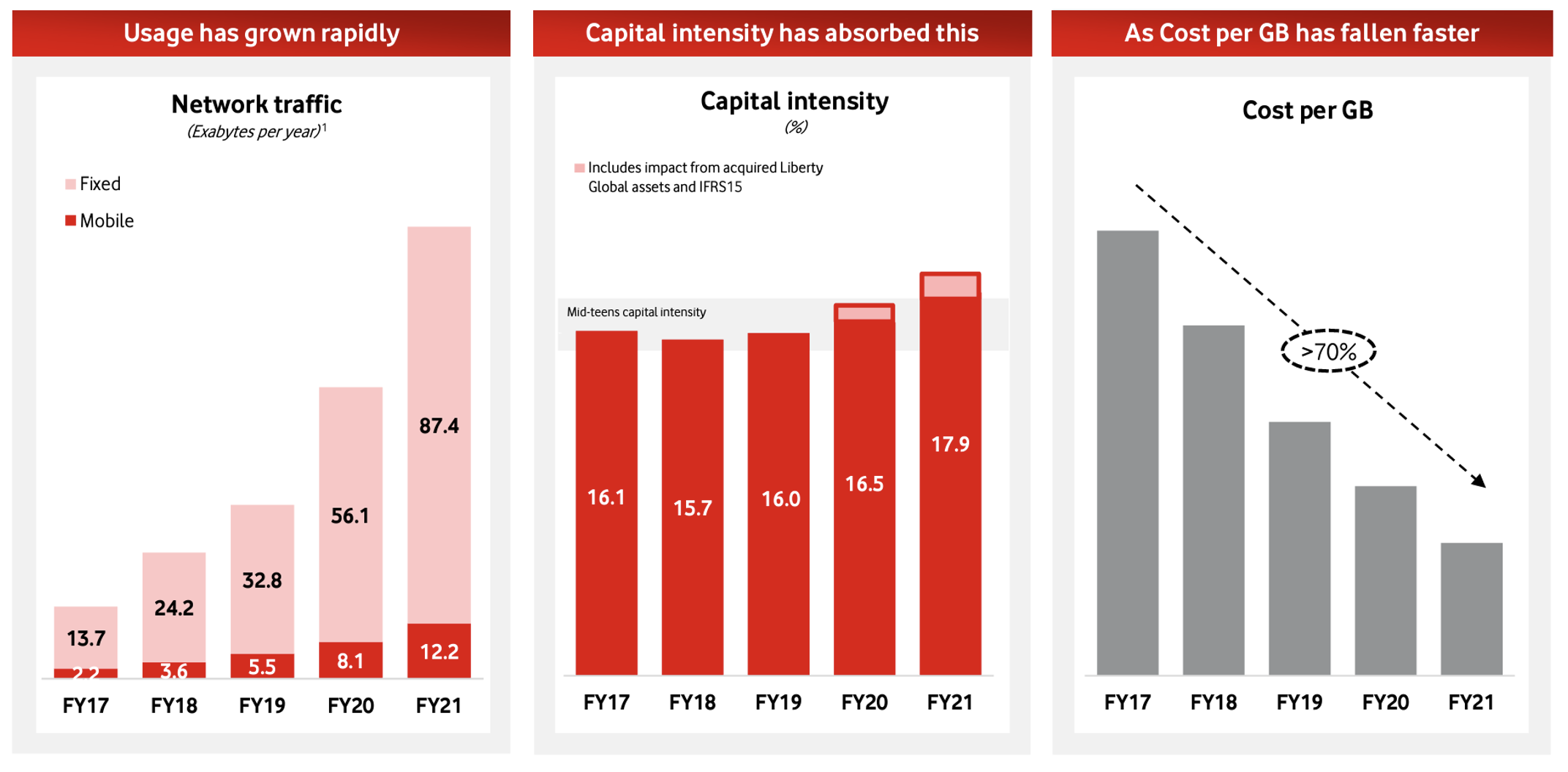 Figure 2 – Traffic, Capex and Unit cost trends in Vodaphone Source: Vodaphone 2021 Investor Briefing